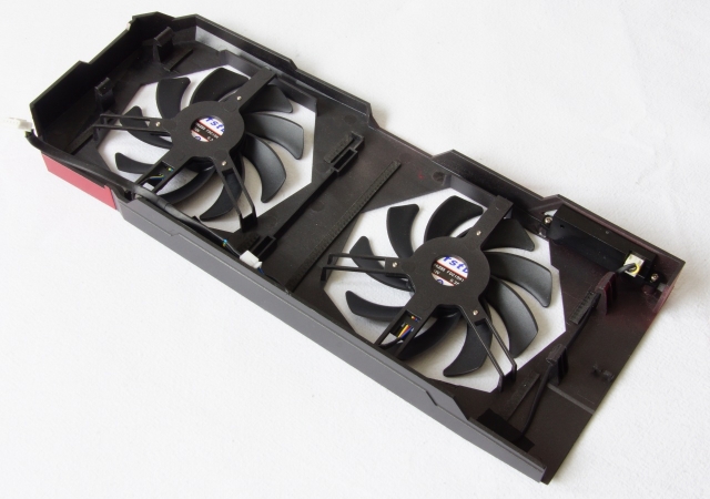 Кулер відеокарти має в підставі випарну камеру, закріплену на опорній пластині. Випарну камеру, що контактує з графічним процесором, пронизує водяний канал.