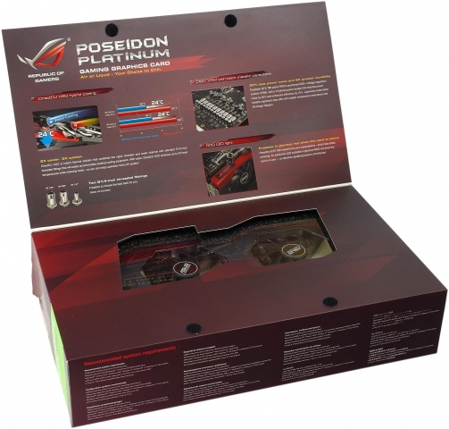 На передній панелі упаковки під назвою відеокарти розміщено напис: «Air or Liquid - You Choice to Chill». Якраз вона і дає знати користувачу про можливість використання для охолодження відеокарти повітря або води за бажанням користувача. Це вся інформація про відеокарту, розташована на передній панелі. Додаткова інформація про відеокарту і її технологічні особливості розташована на задній панелі і на внутрішній поверхні відкидний кришки.