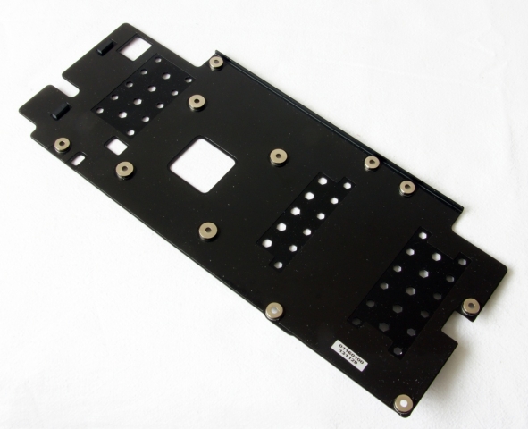 Задню частину друкованої плати закриває великий алюмінієвий бекплейт з прорізами для кращого охолодження компонентів. Він виконує тільки захисну функцію і не виступає в якості радіатора для компонентів плати.