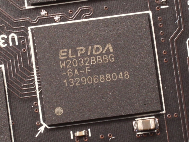 В якості мікросхем пам'яті використовуються чіпи ELPIDA W2032BBBG-6A-F.