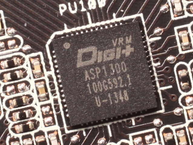 У фазах живлення графічного процесора в якості силових елементів використовуються сучасні MOSFET збірки, в той час як в двох фазах харчування відеопам'яті використовуються по три польових транзистора. У підсистемі живлення відеокарти використовується більш якісна елементна база (концепція Super Alloy Power). В якості контролера, відповідального за управління фазами живлення, використовується мікросхема DIGI + VRM ASP1300.