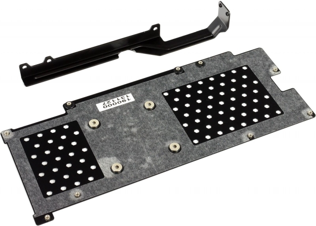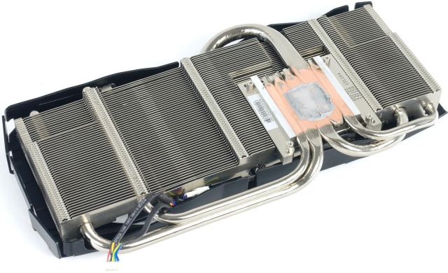Він являє собою металеву пластину з невисокими ребрами, які збільшують площу тепловіддачі. Відеопам'ять, на жаль, позбавлена ??радіатора і охолоджується природним шляхом. Для збільшення жорсткості всієї конструкції на звороті друкованої плати встановлена ??металева пластина.