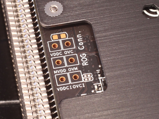Як і стандартна модель, відеокарта ASUS Radeon R9 290X DirectCU II має перемикач для вибору одного з двох режимів роботи системи охолодження. Крім цього відеокарта обзавелася контактними майданчиками (ASUS ROG Connect) для контролю напруги живлення.