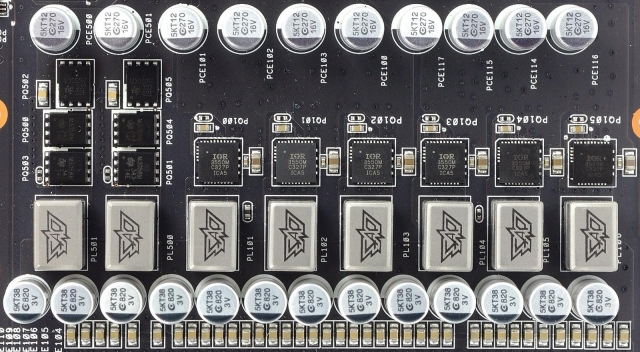 Розведення друкованої плати, в порівнянні зі стандартною моделлю, трохи змінена. У підсистемі харчування з'явилися додаткові фази. За однією додатковою фазі харчування з'явилися в ланцюзі живлення графічного процесора і відеопам'яті. Таким чином, загальна кількість фаз в підсистемі харчування досягає 9.