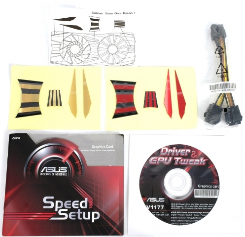 Основна увага потенційних покупців інженери компанії ASUS акцентують на системі охолодження. За їхніми твердженнями вона тихіше, і на 20% ефективніше справляється з відведенням тепла від графічного процесора. У нижній частині передньої панелі розташовані ярлики, що вказують на основні особливості відеоадаптера і його комплекту поставки. Тут слід звернути увагу на ярлик «ОС», який повідомляє про розгін відеоадаптера. З цього випливає, що інженери компанії впоралися з охолодженням чіпа, якщо вирішили збільшити його номінальну частоту роботи. На задній панелі упаковки теж розташоване опис відмінностей даної моделі.