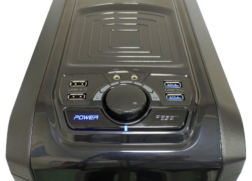 На верхній кришці корпусу розробники передбачили панель роз'ємів з досить великою майданчиком під зберігання дріб'язку. Її розміри настільки великі, що вільно вміщають ємний жорсткий диск або швидкісний твердотільний накопичувач, що створює додаткові можливості, так як серед роз'ємів є вельми актуальні порти USB 2.0 і USB 3.0. Розміщені вони попарно на оптимальній відстані один від одного, що усуває можливі проблеми при їх використанні, що спостерігаються в продукції багатьох конкурентів. Тут же присутні роз'єми для підключення навушників і мікрофону. Розташована між ними велика рукоятка з глянсового пластика завідує плавним регулюванням швидкості шести вентиляторів. Тільки слід пам'ятати, що при зниженні швидкості обертання крильчатки вентиляторів, вбудована в них підсвічування значно тьмяніє.