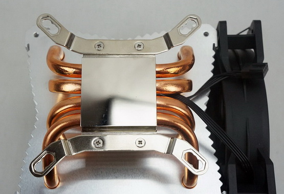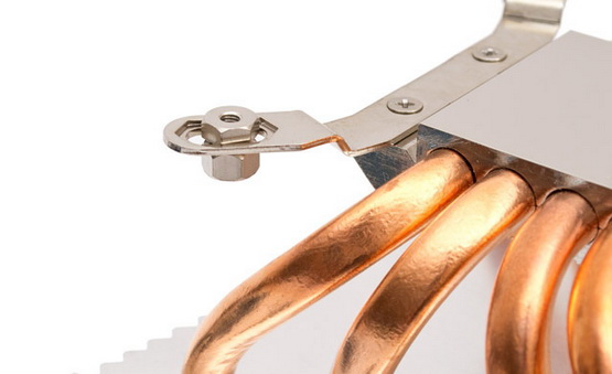 Основа кулера виготовлено з міді, шар нікелю забезпечує йому додатковий захист від корозії. Через нього проходять чотири теплові трубки, з кроком між ними 1 мм. Пайки в місцях зіткнень трубок з підошвою і пластинами радіатора не спостерігається.