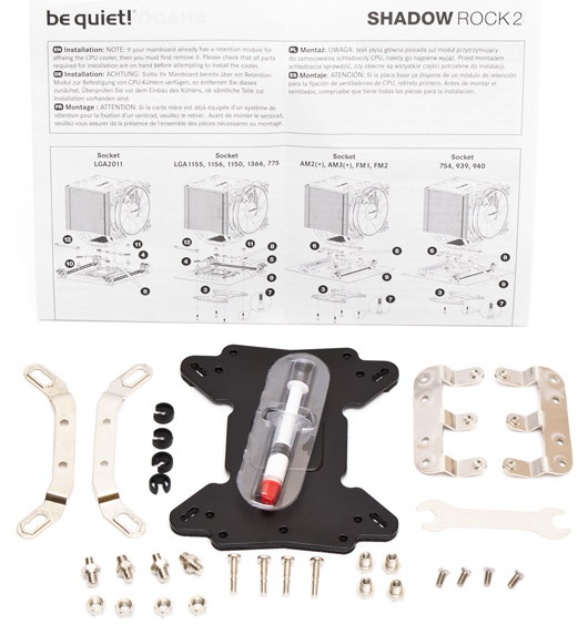 Shadow Rock 2 забезпечений універсальним кріпленням, за допомогою якого систему охолодження можна встановити на всі актуальні процесорні платформи. Наша розповідь присвячений монтажу на сокет Intel LGA1155. Якщо вам доведеться мати справу з іншим типом процесорного роз'єму, обов'язково перегляньте інструкцію, це може помітно полегшити задачу.