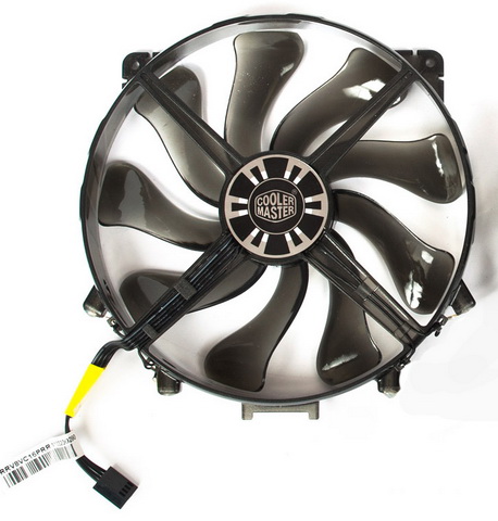 Cooler Master V8 GTS комплектується 140-мм фірмовими вентиляторами. Вони відрізняються димчастої дев'ятилопасною крильчаткою і нестандартної рамкою. Їх фактичні габарити складають 140х140х25 мм, тоді як на офіційному сайті вказана товщина 20 мм. Два посадочних отвори знаходяться у верхній частині рамки, на відстані 110 мм один від одного. У нижній частині рамки розташовані чотири червоних світлодіода. При установці низ вентилятора впирається в спеціальний жолоб в підставі, гвинти фіксують вертушку тільки зверху.