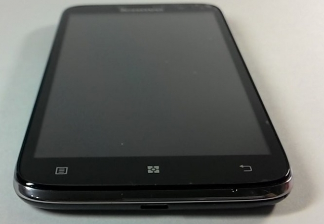 Велику частину передньої панелі Lenovo A850 займає великий 5,5-дюймовий дисплей, над яким посередині розташовується логотип компанії, а ще вище - проріз динаміка, прикрита декоративними гратами. Праворуч від динаміка знаходяться об'єктив фронтальної камери і індикатор, миготливий червоним кольором в процесі зарядки. Під екраном розміщені три сенсорні кнопки «Контекстне меню», «Додому» і «Назад». Крім того, на лицьовій панелі смартфона знаходяться датчики освітленості і наближення, але побачити їх неможливо.