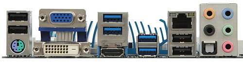 Для підключення другого пристрою доведеться задіяти порти «USB 2.0», благо їх на задню панель винесли одразу чотири, а ще шість можна підключити до трьох внутрішніх роз'ємів на самій материнській платі. Є і чотири порти стандарту «USB 3.0», які легко дізнатися по синьому забарвленню. Всі вони винесені на задню панель, але ось реалізовані різними способами. Перші два функціонують завдяки сторонньому контролеру «Etron EJ168», а два інших за допомогою набору логіки «Intel Z77 Express». На ній же реалізований ще і внутрішній роз'єм, що дозволяє підключити два додаткових порту «USB 3.0», довівши їх загальну кількість до шести. Хоча краще було б саме ці два порти «повісити» на додатковий контролер. Справа в тому, що окремі моделі комп'ютерних мишей, підключені до портів на сторонньому контролері, переставали працювати під час установки операційної системи. Вирішується ця проблема підключенням подібної комп'ютерної мишки через будь-який порт «USB 2.0».