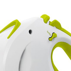 До речі, є захист від випадкового випадання насадок під час роботи, що говорить про надійність і безпеку приладу. Модель підтримує турбо-режим, тобто на кілька секунд міксер можна перевести на максимальні оберти, що буває необхідно в деяких випадках. Потужність міксера становить 400 Ватт, якої цілком достатньо для збивання легких кремів, замісу густого тесту і приготування повітряного картопляного пюре.