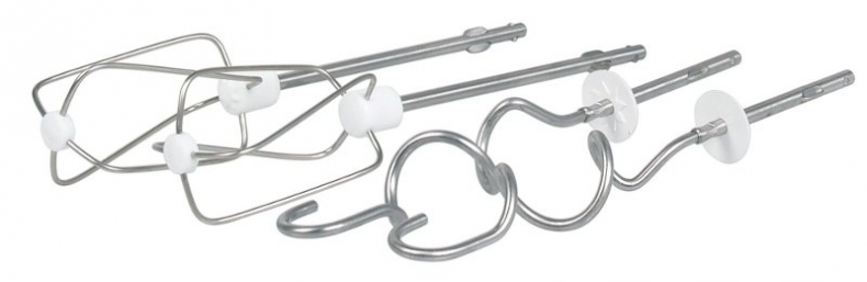 Модель поставляється в комплекті з 5 насадками: віночки для збивання, гаки для замісу тіста, насадка для приготування пюре, подрібнювач. А тепер більш докладно зупинимося на кожній насадці.