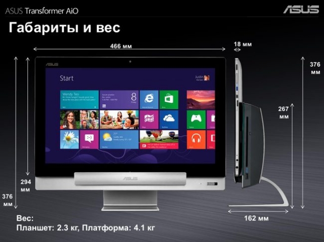 ASUS Transformer AiO P1801 являє собою моноблок, екран якого можна від'єднати і використовувати в якості планшета.