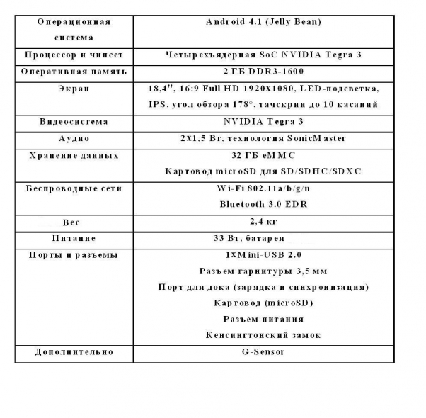 При використанні планшета виникає незручність з використанням гіроскопа в ігрових додатках з огляду на досить велику вагу. Також великі габарити і вага можуть стати перешкодою при використанні планшета далеко від дому.