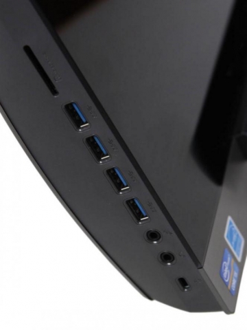 Зліва розташовані чотири роз'єми USB 3.0, кардрідер і роз'єми для підключення мікрофону і навушників.