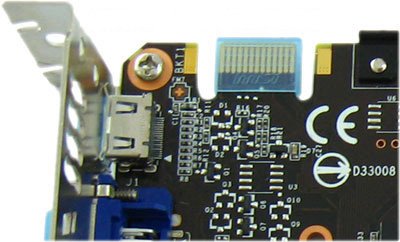 Для живлення відеокарти виведений тільки один 6-pin роз'єм на задньому торці плати.