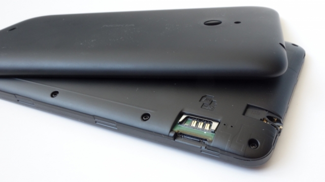 Під кришкою розташовані акумуляторна батарея, роз'єм для карти пам'яті формату microSD і слот для microSIM-карти (передбачена можливість її "гарячої" заміни). Для того щоб зняти кришку, слід підчепити її у лівого або правого кута нижнього торця. Слоти під картки знаходяться на правій боковині. До речі, акумулятор прикритий додаткової пластиковою панеллю.