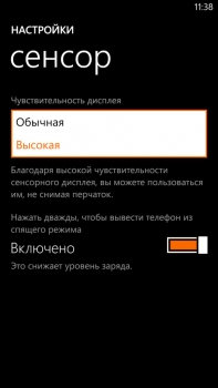 Варто також відзначити використання в даній моделі суперчутливим сенсорного дисплея. Унікальність і, власне кажучи, перевага такого роду сенсора полягає в можливості управління пристроєм (за допомогою натискань на екран) навіть в рукавичках.