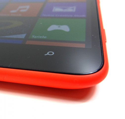 Рамка навколо фронтальної частини конструкції трохи виступає над захисним матеріалом, що прикриває дисплей. Насправді, пластик виступає над поверхнею скла не настільки, щоб запобігати появі подряпин на дисплеї при розміщенні смартфона на плоскій поверхні фронтальною частиною корпусу вниз.