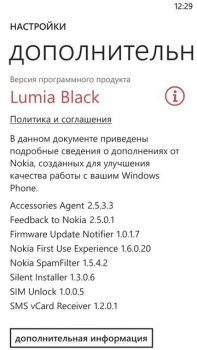 В цілому, в даній моделі оболонка ідентична такій у флагмані Nokia Lumia 1520. Відмінність, мабуть, полягає лише в функціональності навігаційних додатків. Так, в розглядаємому пристрої встановлена ??програма "HERE Drive", а в Nokia Lumia 1520 - "HERE Drive +". У оглядається моделі також встановлені програми "HERE Transit", "HERE Maps" і "HERE Lens".