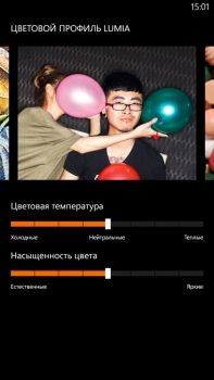 У пам'яті смартфона встановлено додаток" Nokia Camera ", яке представляє собою поєднання" Nokia Smart Camera "і" Nokia Pro Cam ". Інтерфейс даного ПЗ оформлений дуже вдало і дозволяє зручно налаштовувати баланс білого, значення ISO і інші параметри.