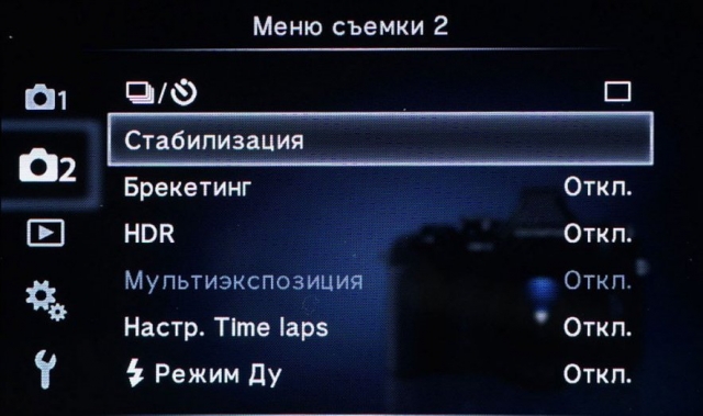 Фотокамера оснащена пятіосевой системою стабілізації, яка працює як при фотозйомці, так і в процесі запису відео. Завдяки цій системі фотограф може здійснювати зйомку на довгих витримках без штатива.