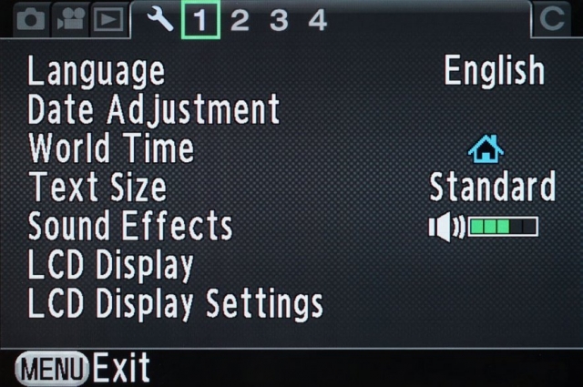 У розділі налаштувань камери вибираються мову інтерфейсу і розмір шрифту, встановлюються час, дата, регулюється гучність звукових ефектів, налаштовуються екран, авторські права, USB і HDMI-з'єднання, активуються функція автоматичного вимкнення, функція видалення пилу, здійснюються форматування і скидання всіх установок. Тут же можна створити папку, змінити її назву, а також змінити назву файлу.