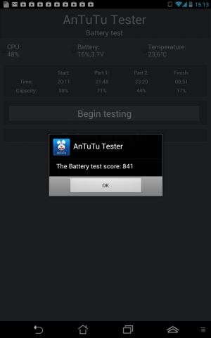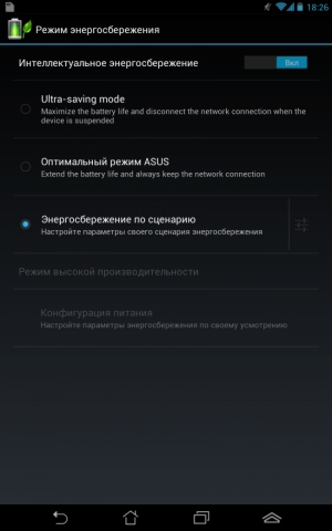 Автономну роботу планшета ASUS Fonepad забезпечує акумуляторна батарея ємністю 4270 мАг (3,75В) або 16 Втч. Під максимальним навантаженням планшет може пропрацювати без підзарядки шість годин, а в режимі помірного використання мультимедійних можливостей - дев'ять годин (дані синтетичного тесту AnTuTu Tester).
