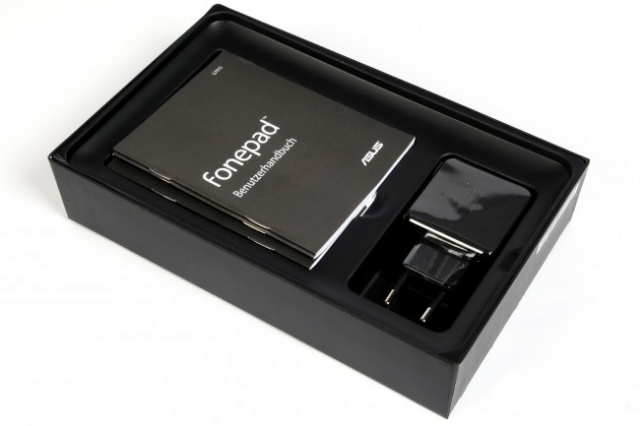 Поставляється планшетний комп'ютер ASUS Fonepad в невеликій коробці, на нижню частину якої нанесена інформація про технічні характеристики моделі. Продається модель в двох кольорах - Titanium Gray і Champagne Gold. Крім самого планшета ASUS Fonepad користувач в коробці комплекту поставки знайде кабель USB / microUSB, мережевий адаптер, коротку інструкцію і гарантійний талон.