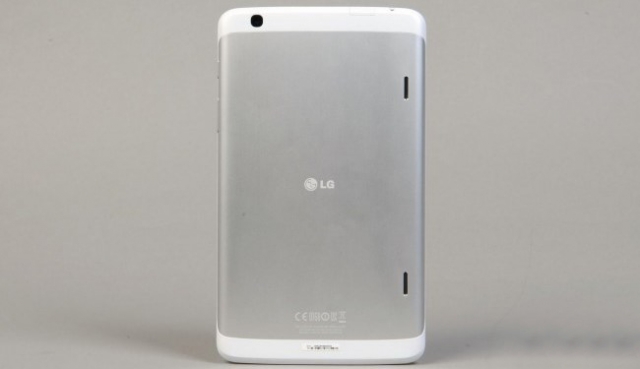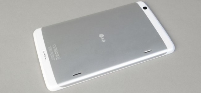 Велика частина тильної панелі планшетного комп'ютера LG G Pad 8.3 зроблена з анодованого алюмінію. У моделі білого кольору даний метал має свій первозданний колір, а в моделі чорного кольору він забарвлений в основний колір корпусу. З металу зроблена не тільки велика частина тильної панелі. Дана металева панель також заходить і на праву і ліву бічні грані пристрою. Верхня і нижня частини тильної панелі LG G Pad 8.3 виконані з пластика. Під пластиковою частиною корпусу, розташованої у верхній частині тильної сторони пристрою, знаходяться антени бездротових модулів, так як саме пластик дозволяє уникати інтерполяції сигналу. У верхньому лівому кутку тильної панелі знаходиться об'єктив основної камери планшетного комп'ютера. Посередині тильній панелі знаходиться невеликого розміру логотип LG. На нижню частину металевої вставки нанесена службова інформація. У правій частині тильної панелі розташовані дві довгасті прорізи, під якими розташовані два мультимедійних динаміка, що забезпечують стереозвук. Навіть коли планшет знаходиться в горизонтальній орієнтації, динамік не перекриваються пальцями, що не може не радувати. Використання металевих елементів при виготовленні корпусу дозволило значно підвищити міцність корпусу. В цілому якість збірки дуже висока, всі деталі підігнані одна до одної дуже добре, нічого не скрипить і не люфтить навіть при спробі зігнути планшет.
