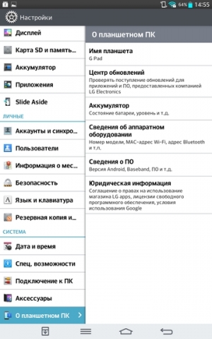 Модель LG G Pad 8.3 - це компактний 8-дюймовий планшетний комп'ютер з продуктивною апаратною платформою, відмінним Full HD-екраном, якісно зібраним корпусом, непоганий акустичною системою, функціональним призначеним для користувача інтерфейсом і відносно невисокою вартістю.