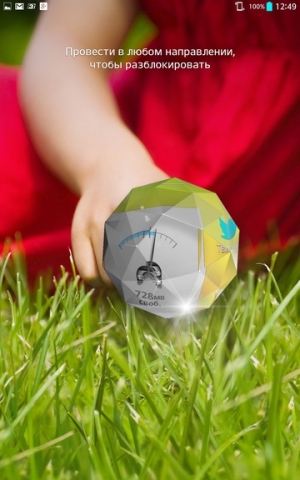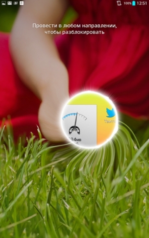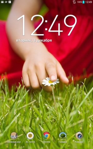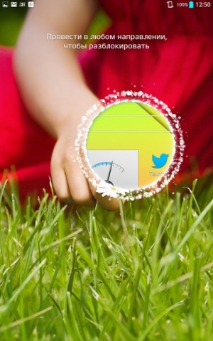Стандартний екран блокування не відрізняється ніякими особливими можливостями. Користувач може подивитися дату, поточний час, що залишився заряд акумулятора, наявність нових подій, розблокувати планшет, відкрити панель повідомлень або швидко перейти до одного з попередньо обраних додатків, наприклад, записнику, камері, браузеру, поштової скриньки або галереї. Розташування іконок вищевказаних програм також може змінюватися в залежності від орієнтації дисплея. При бажанні в настройках планшета можна активувати відображення на екрані блокування погодного віджета. Сама розблокування може супроводжуватися одним з п'яти ефектів, з якими також можна ознайомитися у відповідному пункті меню налаштувань.