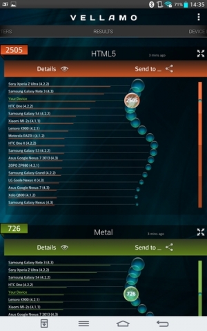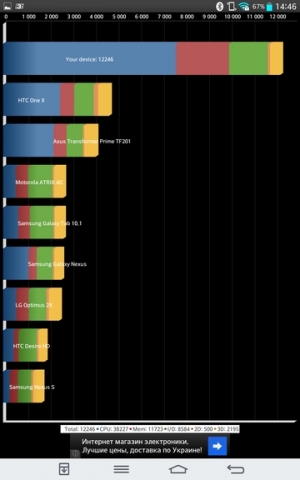 Така начинка забезпечує високий рівень продуктивності і дозволяє планшету справлятися з будь-якими завданнями, які на нього може покласти користувач. Схожим рівнем продуктивності може похвалитися, наприклад, планшетний комп'ютер Asus Nexus 7 (2013 року). Інтерфейс працює плавно, але «подлагіванія», які характерні для більшості Android-планшетів, що мають фірмовий призначений для користувача інтерфейс, іноді трапляються.