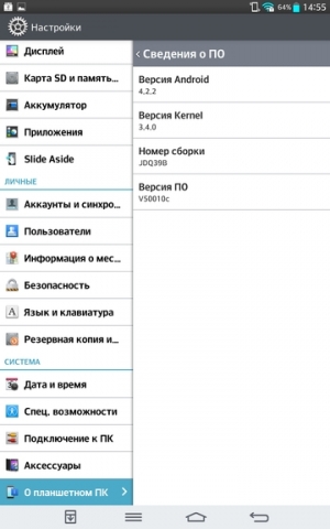 Працює планшетний комп'ютер LG G Pad 8. 3 під управлінням операційної системи Android 4.2 з фірмовою користувальницької оболонкою Optimus UI 3.0. Даний призначений для користувача інтерфейс дуже схожий на той, який використовується в смартфонах компанії LG, зокрема у флагманської моделі LG G2, що несильно то і дивно.