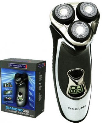 Основний секрет REMINGTON DIAMOND 360Полягає в тому, що леза бриючих головок виконані з технічного алмаза, що покликане підвищити їх довговічність і збільшити якість гоління. Завдяки прогумованою ручці, Бритва не буде ковзати в руці при голінні. Включення і виключення проводиться рельєфною електронної кнопкою на лицьовій стороні корпусу. Бритвенная система складається з трьох незалежних рухомих головок з подвійним рядом лез, щоб плавно і точно повторювати контури особи. Головки обертаються в усіх напрямках на 3600, а леза щільно прилягають до шкіри, щоб зрізати волоски ближче до кореня. Тример дозволить підрівняти вуса або «підредагувати» віскі.