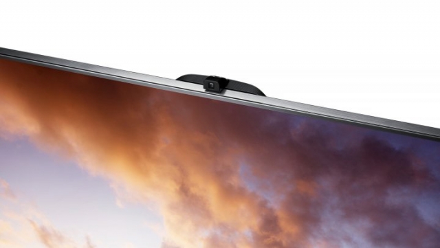 Веб-камера ховається над екраном у верхній частині телевізора і регулюється по висоті за допомогою коліщатка, як у всіх моделей Samsung.