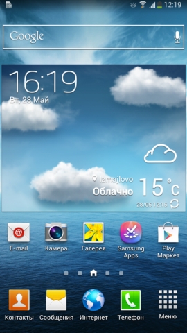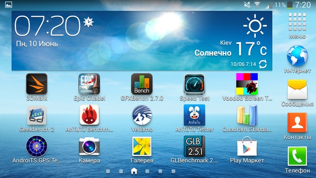 У нижній частині робочого столу знаходяться значки найбільш часто використовуваних, на думку розробника, додатків - телефон, контакти, повідомлення, Інтернет, меню.