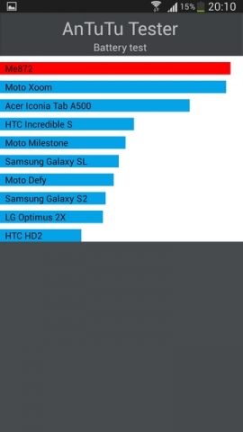 У синтетичному тесті автономності Antutu смартфон набрав 872 бали. Цей показник є досить високим, особливо з урахуванням великої діагоналі екрана і продуктивної апаратної «начинки».