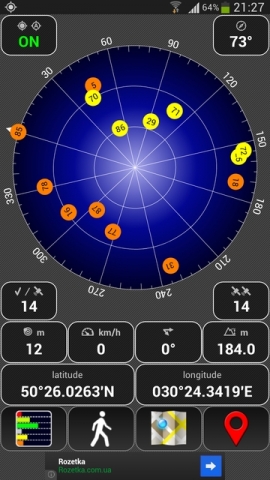 Пристрій оснащений модулем GPS. Пошук супутників займає близько хвилини.
