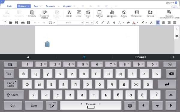 У пристрої встановлено офісний пакет Hancom Office, в якому є всі необхідні інструменти для роботи з презентаціями (Hshow), текстами (Hword) і таблицями (Hcell). На великому 12,2-дюймовому дисплеї набирати тексти дуже зручно. Розміри кожної з віртуальних клавіш складають 9х9 міліметрів, що всього лише на 3-4 міліметра менше, ніж кнопки звичайної фізичної клавіатури. Віртуальна клавіатура займає половину дисплея.