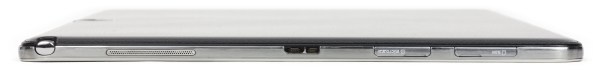 На верхній грані пристрою знаходяться отвір мікрофону, клавіша живлення, здвоєна кнопка регулювання гучності і інфрачервоний порт. Нижня грань планшета повністю вільна від усіх елементів.
