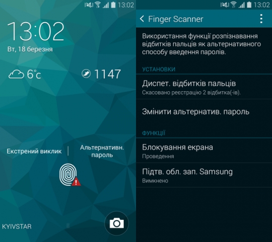 Після виходу восени 2013 року на ринок нового смартфона від Apple зі сканером відбитком пальців, деякі розробники мобільних пристроїв теж почали впроваджувати дактилоскопічний датчик в свою продукцію. Не стала винятком і Samsung. Galaxy S5 оснащений сканером відбитків пальців, який вбудований в апаратну клавішу «Додому». Для початку сканування відбитка необхідно провести пальцем по кнопці, а не доторкнутися до неї, як це потрібно зробити в iPhone 5s. Дактилоскопічний датчик дозволяє здійснювати розблокування апарату, ідентифікацію власника для здійснення покупок. За допомогою сканера відбитків пальців можна захистити особисті дані від інших користувачів. Дактилоскопічний датчик в корейському апараті працює швидше, ніж в iPhone 5s.