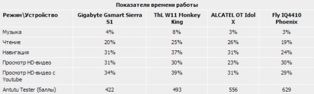 Автономну роботу смартфона Gigabyte Gsmart Sierra S1 забезпечує знімна літієво-полімерна акумуляторна батарея ємністю 2000 мА * год. Такий ємності акумулятора для девайса з 5-дюймовим IPS HD-дисплеєм мало, а тому смартфон не демонструє неабияку автономності. При помірному навантаженні смартфон може пропрацювати одну добу. Середній рівень продуктивності акумуляторної батареї підтверджує і результат в 422 балів, який пристрій набрало в синтетичному тесті Antut Tester.