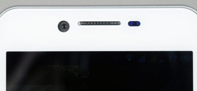 Більшу частину фронтальної панелі смартфона Gigabyte Gsmart Sierra S1 займає 5-дюймовий дисплей. Бічні рамки дисплея досить широкі, що також не можна віднести до достоїнств. Над екраном розташовані об'єктив фронтальної камери, проріз комунікаційного динаміка, накрита металевою сіткою, і пара датчиків - освітленості і наближення. Під екраном знаходяться отвір мікрофону і три звичні по іншим Android-смартфонів сенсорні клавіші - «Назад», «Додому» і «Меню недавно запущених додатків». Всі три сенсорні кнопки мають світлодіодне підсвічування білого кольору, яка досить нерівномірна, що можна помітити, якщо придивитися.