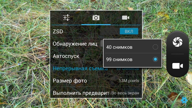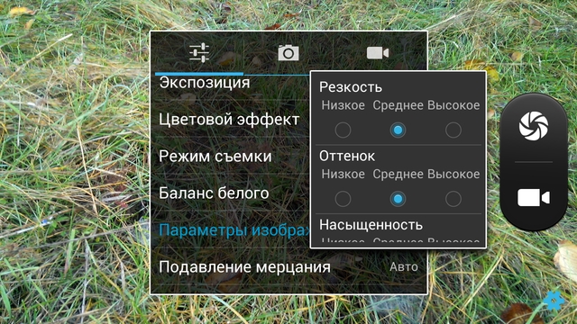 Інтерфейс камери стандартний, змін зазнав лише пункт «Параметри зображення», в якому можна налаштувати насиченість, різкість, яскравість, відтінок і контраст. Щоб змінити настройки для істотно впливає на кінцевий результат. Є у камери і режим HDR, що працює не найкращим чином і тільки додає трохи деталей в тінях.