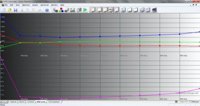 Калібрування дисплея заслуговує похвали. Гамма-крива лінійна і наближається до еталонного значення 2,2, що свідчить про коректне відображенні світлих і темних відтінків. Колірний обхват матриці дисплея смартфона трохи ширше, ніж еталонний колірний обхват sRGB. Колірна температура трохи завищена, через що відображаються відтінки холодні.