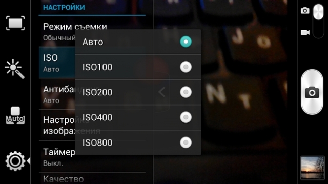 Настройок користувачеві доступно дуже мало. В основному коригуванню піддаються базові параметри, такі як режим зйомки, дозвіл зйомки, баланс білого, експозиція, насиченість, яскравість, контрастність і т. П. Зйомка може проводитися одиночними кадрами і серійно. Вручну значення ISO коригується в межах від 100 до 800 одиниць.