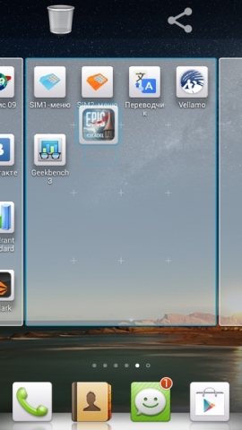 Після розблокування смартфона користувач потрапляє на головний робочий стіл, на якому вже розміщені корисні, на думку виробника, віджети. Взагалі користувач може використовувати для розміщення ярликів додатків, віджетів і папок від одного до дев'яти робочих столів. Регулюється кількість робочих столів в налаштуваннях смартфона. Через відсутність меню встановлених додатків ярлики всіх встановлених на смартфон програм поміщаються на робочі столи. Різні ярлики можна групувати по папках. Деякі папки з ярликами вже створені спочатку, їх, звичайно ж, можна звільнити від поміщених в них ярликів і видалити.