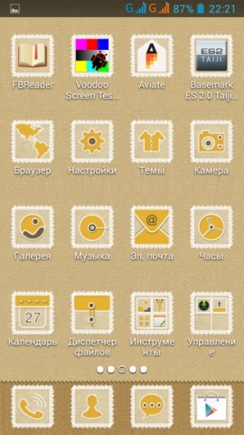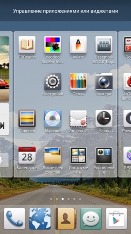 Також користувач може самостійно створити нову папку, для цього достатньо перетягнути ярлик однієї програми на ярлик іншого застосування. На панель з іконками, розміщену в нижній частині екрана, яка переходить в незмінному стані з одного робочого столу на інший, можна помістити до п'яти іконок. У налаштуваннях є три вже готових теми, але користувач при бажанні з окремих елементів може самостійно створити свою власну тему оформлення робочого столу і екрану блокування. Під час налаштування теми вибирається анімація, яка буде використовуватися при гортанні робочих столів. Не можна не відзначити можливість активувати автоматичну зміну шпалер «по струшуванні», а також через певний проміжок часу.